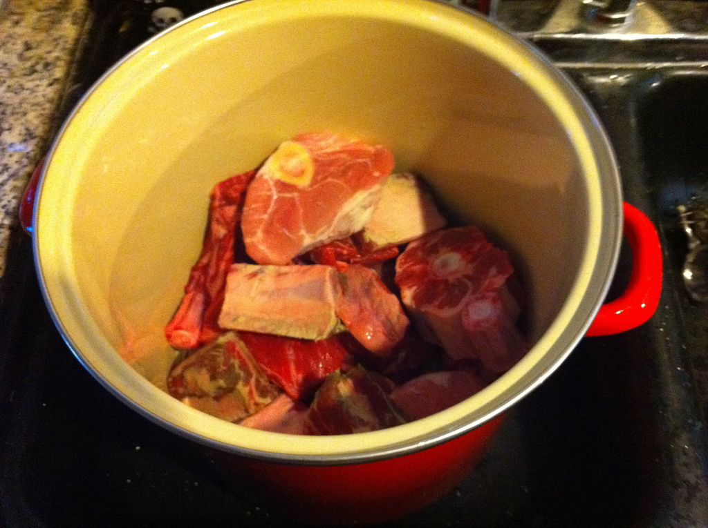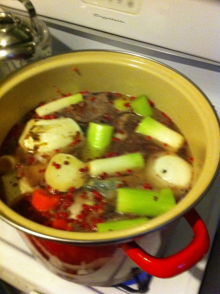Anyway, I put that lovely pile of dead animal in a giant pot.