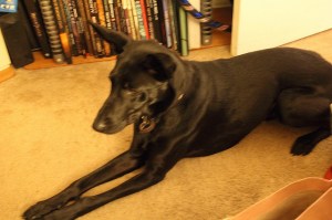 One day, I came home from work to find that Assistant Chef Bourdain (who goes by Blink when he’s not in the kitchen) had broken into a bag of blood meal fertilizer while I was out. Blood meal fertilizer is, in fact, just congealed blood in a bag, exactly like boudin noir – only for the garden instead of the plate. So there’s congealed blood scattered all over the kitchen, and in a big pile in the dining room on the carpet, too. And the dog looked very uncomfortable, and vaguely guilty, not unlike someone slinking out of a fetish club. Clearly he’d eaten most of a three pound bag of congealed blood.