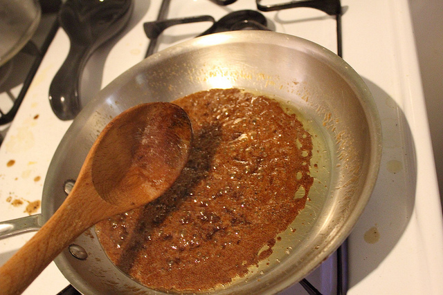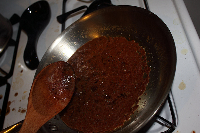 The actual recipe was fairly easy. I still managed to fuck it up pretty spectacularly, but fortunately it was with easily replaced ingredients. Honestly, you wouldn’t think applying heat to butter and sugar to create caramel was all that hard. And yet, I succeded in creating the below revolting mess.
