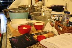 So as the opening phase of this particular operation, I gathered my meez. You’ll note that I happened to find the precise brand of chocolate you mention in the book – and happily they carry it at the Whole Foods down the street. Vahlrona, to be precise. But I threw in a little Dagobah chocolate for the second layer, because it’s really, really good, and also named after Yoda’s planet.