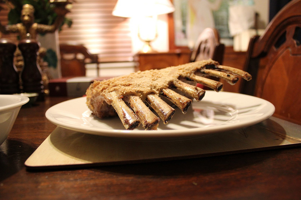 Doesn’t “Carre D’agneau” sound like a character from a chick-flick like “Sex In the City” or something? I’m going to name a character in my next story “Carrie Lamb”. She (or he) should somehow exhibit the characteristics of being delicious, covered in mustard and crumbs, and easy to prepare.