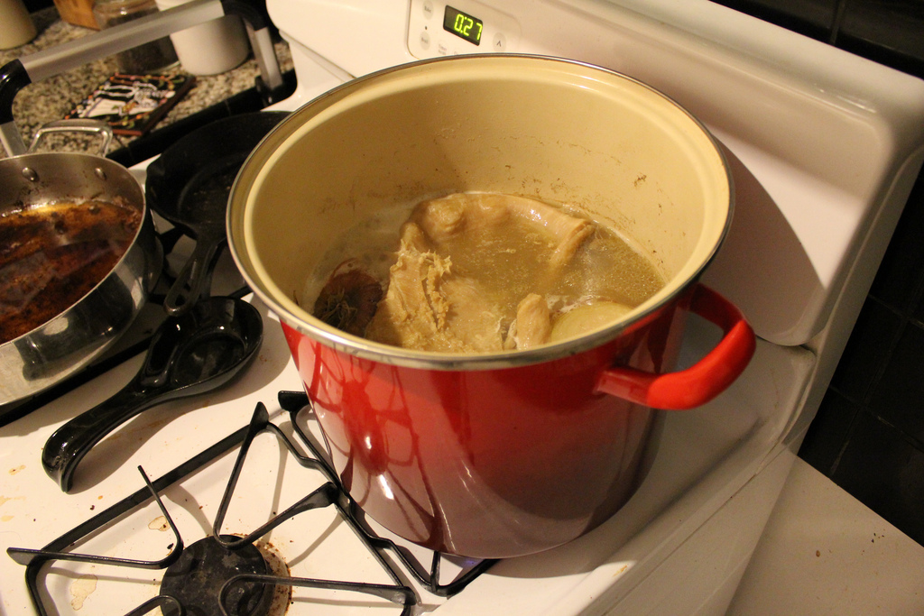 I reserved the pig juice for the rest of the recipe, and called it a night. It was pretty late by the time I was done, because there’s pretty much no weekend day that you can cook for three days before and still not be on a work night. That was a complicated sentiment, but what I basically mean was, I got a short night’s sleep in a house redolent with the scent of boiled cow stomach. It wasn’t good chef. Not good at all.