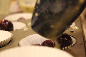I’ve noticed most of the desserts in your book aren’t very sweet, chef. These weren’t either. I dusted them with powdered sugar – indeed, I even had a sifter! But the results was something like an eggy, liquory, cherry-flavored mess. They didn’t come out of the tins very easily (sorry Sonja!) and had a sort of soggy consistency not unlike the bits of egg left in the pan when you’re trying to clean up after brunch. Not that I’ve ever been so hung over that I’d eat that. (I totally have.)