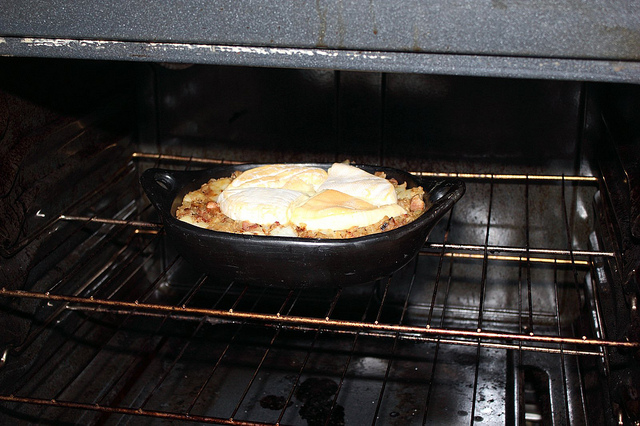 Then I baked them. The crust firmed up and kept the potatoes moisture in while they baked. The nice thing was that once they were done, I just turned the oven off and left them in there to keep warm. This is a nice touch when you’re cooking multiple dishes.