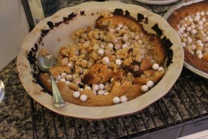 Immediately after pulling them out of the oven, I became sensible to my error. At first I thought, “Crap, I’m going to have to scrape these weights off the top of the shell!” But I realized soon even that was impossible; the little balls had – doing their job – weighted right down to the bottom. It was impossibly studded with balls, like a Pride Parade, and there was no saving it. I at least got to taste the shell while I attempted to salvage the balls. (There’s a joke there, but I think more than one ball joke in a paragraph is worse than crass, it’s just lazy.)